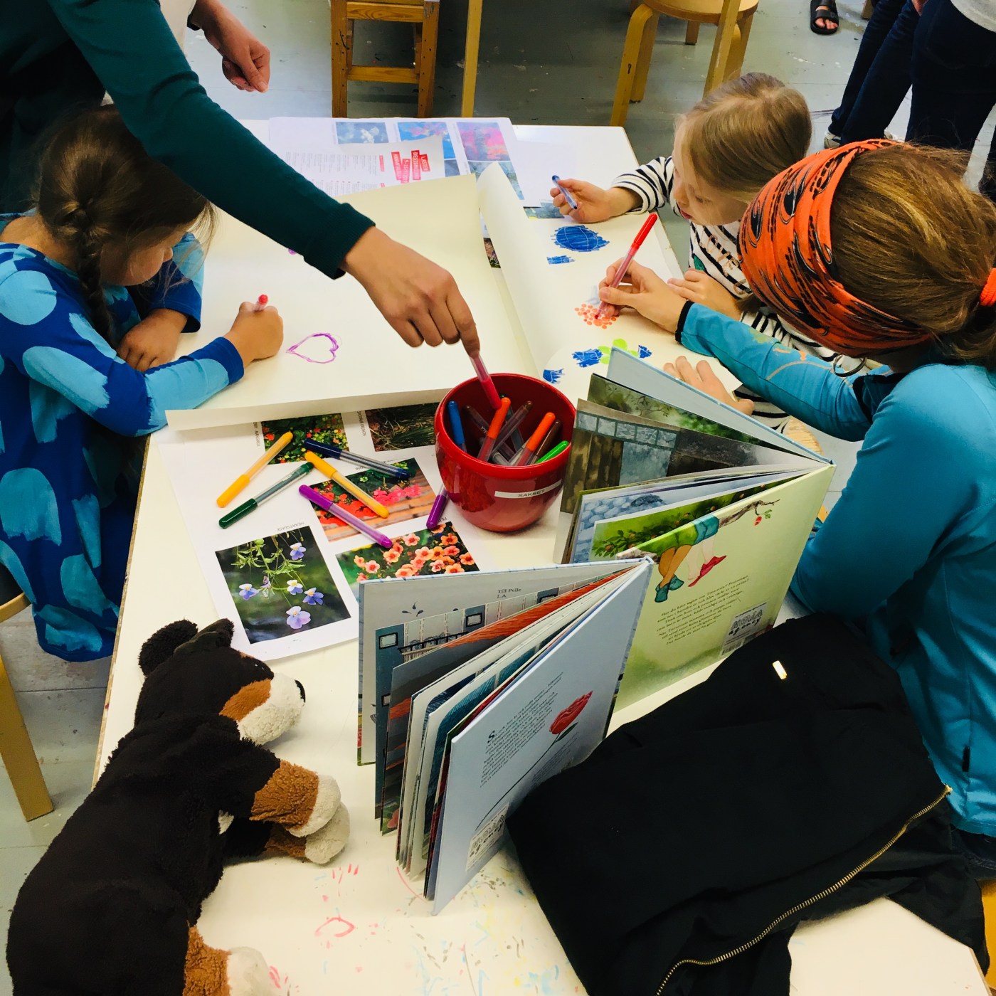 While the workshops were clearly a social activity – families discussing with each other, our team getting to know parents and children – it was also an opportunity for children to meet illustrated universes from the Estonian and Swedish books provided, as well as the given picture boards of local plants. Some of them have been very inspired by these universes.